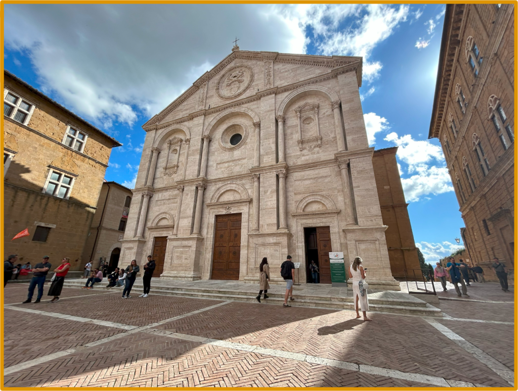 モンタルチーノの次は、ピエンツァへ向かう。ピエンツァは、15世紀のローマ教皇ピオ2世の出身地である。教皇がピエンツァを理想郷に造り変える計画を始め、現在の美しい街並みができあがったらしい。ピオ2世広場というのがあって、ピエンツァ大聖堂と、教皇の邸宅として建てられたピッコローミニ宮という、ピエンツァの見どころが広場に面して立っている。街並みや大聖堂はモンタルチーノとよく似た雰囲気で、中世ヨーロッパにタイムスリップした気分だ。