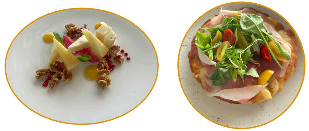 昼ごはんを食べに、セバスチャンおすすめのRistorante la Terrazza della Val d’Orciaに向かった。この店は自分から店員を呼びに行かないとオーダーも会計もできないので、日本人は注意が必要だ。注文したのは、チーズの盛り合わせとヴァルドルチャーナというピザだ。ピエンツァは羊の乳から作られるペコリーノチーズが有名で、蜂蜜などの甘いものと合わせて食べられている。注文したものも、ペコリーノチーズが何種類か盛られており、甘いジャムみたいなものが添えられていた。クアトロフォルマッジに蜂蜜が合うことを知ってからは、チーズ+甘味の組み合わせは最強だと思っている。特に癖強めのチーズであればあるほど甘味と合うと思っている。ピザの方は、日本人がピザと聞いて想像するものとは少し違うが、とても美味しいピザだった。厚みのある生地はもちっとしていて少し甘みがあり、ピザというよりパンに近い。上に水牛モッツァレラチーズとペコリーノチーズ、生ハムとルッコラ、セミドライトマトが乗っている。チーズのこってり感と生ハムの塩気、トマトの酸味がバランス良かった。