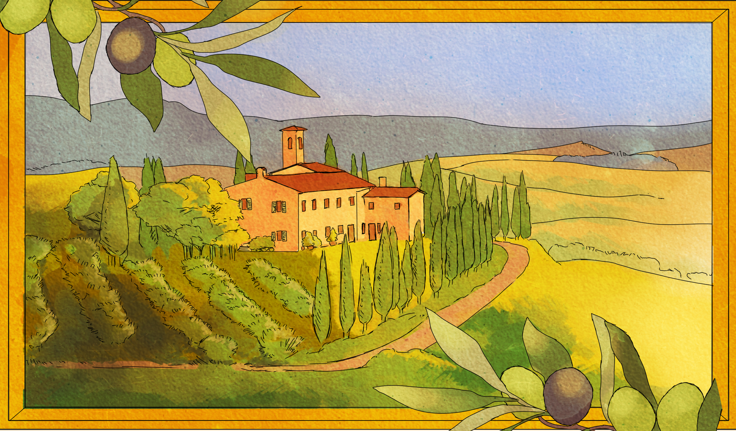 フィレンツェからハイウェイを南に走ること1時間半、オルチャ渓谷の美しい景色が車窓から見えてきた。渓谷と聞くと、みたらい渓谷のような日本の急峻な渓谷のイメージを持つが、オルチャ渓谷はなだらかな丘だ。見渡す限りゆるやかな斜面を描く緑の丘陵地帯が広がっていて、ところどころ糸杉の並木道が続いている。糸杉はオルチャ渓谷のシンボルで、渓谷の美しさをいっそう引き立てている。車窓から糸杉の並木道が見えるたび、乗客たちは熱心に写真を撮っていた。この辺り一帯は葡萄やオリーブの畑らしい。あまりにも景色が美しく、今までたくさんの絵画の題材とされてきた場所であるらしく、自然遺産ではなく芸術の保存、文化遺産として世界遺産登録されたという経緯を持つ。今日訪れる村はそれぞれ、オルチャ渓谷に点在しており、どこも歴史が古く、中世の街並みがそのまま残っている。きっとウィッチャー3やドラゴンズドグマみたいな景色が見られるに違いない。楽しみだ。