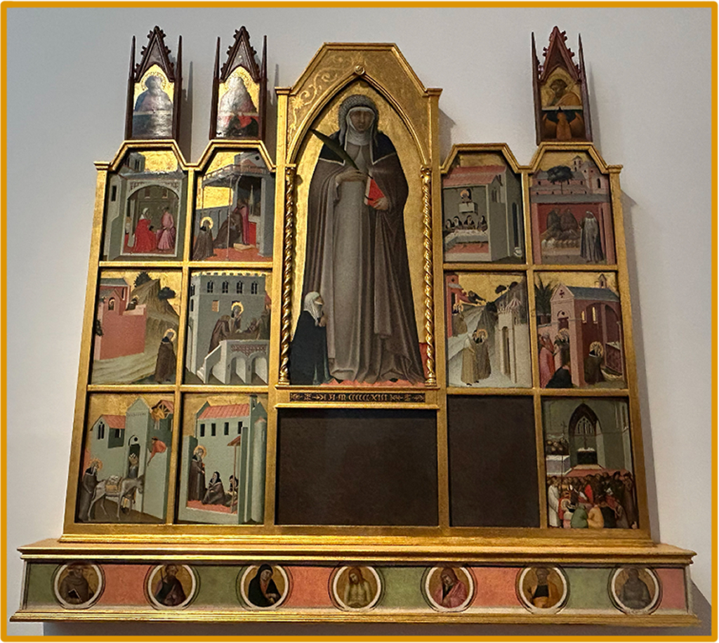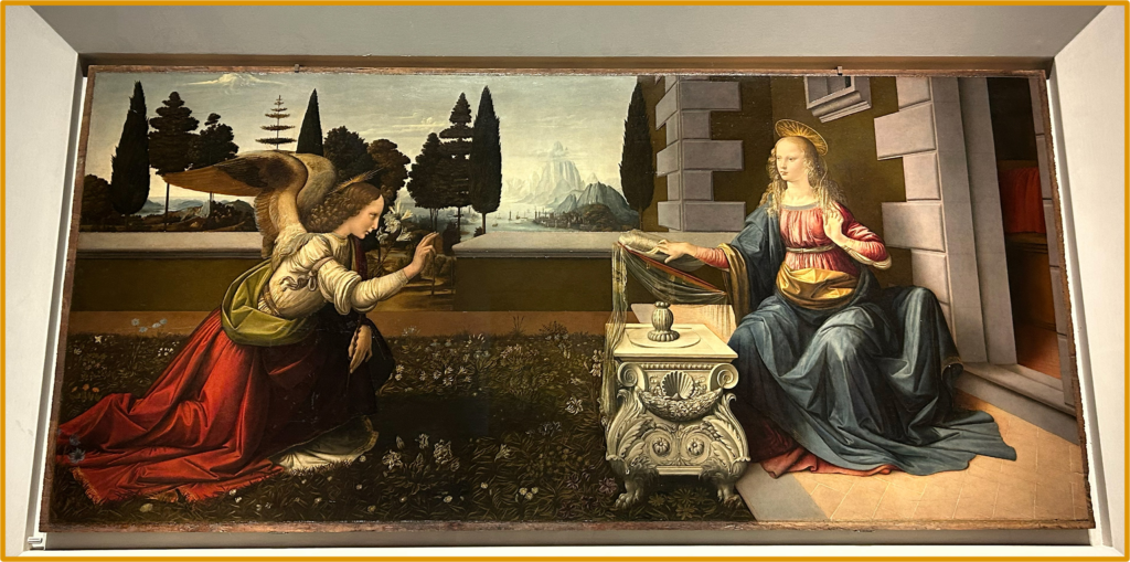 美術館では、13世紀から18世紀までの美術品が、順路に沿って年代の古いものから順番に展示されている。中世の平面的な宗教画から始まって、ルネサンス期の遠近法を使った立体的な絵画、そしてバロック期に入って陰影の表現やダイナミックな表現が増えていく様子を、時代を追って見ていくことができる。なお、美術館3階にあるボッティチェリやレオナルド・ダ・ヴィンチの超有名な絵画の前には、常に人だかりができている。