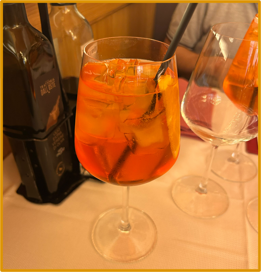 ビステッカ500gと、トスカーナ地方の野菜とパンを煮込んだスープを注文する。飲み物は、アペロールスプリッツというオレンジ色のカクテルを頼んだ。嬉しいことに、この店ではノンアルのスプリッツもあったので、夫はアルコール入り、私はノンアルを頼んだ。このカクテルは、アペロールという苦味のあるリキュールとスパークリングワインを混ぜて作るらしい。イタリアではメジャーらしく、今までもオレンジ色のカクテルを街中でよく見かけ、気になっていたのだ。飲んでみたところ、かなり美味しいカクテルだった。家でも作りたいぐらい美味しい。料理の方も、イタリア旅行で一番美味しかったかもしれないくらいの味だった。スープは、トスカーナ地方の白い豆やほうれん草、にんじんなどがパンと一緒に煮込まれてトロトロになっており、優しい味わいだ。ミディアムに焼いてもらったビステッカは、塩コショウが丁度よく、赤身肉の味をしっかり感じられるステーキだ。赤身なので噛みごたえはあるが、筋などがない良い肉だ。会計をしていると、片言の日本語を話せるスタッフが「まったねー!」と話しかけてくれた。オーダーを取ってくれたスタッフも丁寧な人だったし、これは味、サービス共にレビュー高評価である。