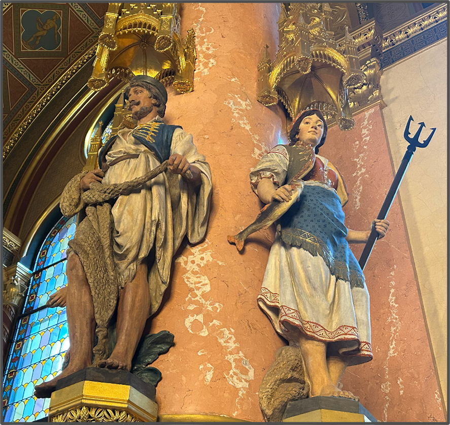 国会議事堂の最寄り駅で下車すると、目標はもう目の前だ。国会議事堂は、オーストリア=ハンガリー君主国時代、19世紀終わりに建築が始まり、20世紀頭に完成した。建設にあたっては、必ずハンガリーの職人を雇い、なるべくハンガリー産の材料を使うようにという条件で入札されたそうだ。ベージュピンクの屋根に、装飾の施された白い壁。尖塔がたくさんあるということはゴシック様式なのだろうが、ハンガリーのゴシック様式はなんだかどれも可愛い雰囲気がある。