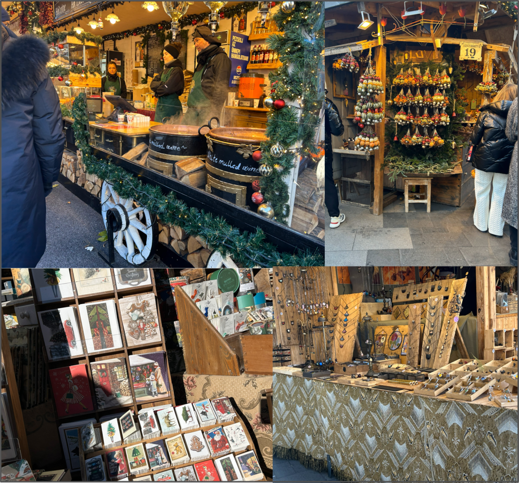 食事の屋台は、ホットワインや巨大ソーセージ、巨大プレッツェル、巨大ホットドッグをよく見かける。ローストチキンやバーガーなどもある。雑貨の屋台もたくさんあり、クリスマスオーナメントやうつわ、アクセサリー、手帳などが売られている。雑貨はセンスが良いものが多く、ハンドメイド雑貨を見るのが好きな人に刺さりそうなデザインだ。購入には至らなかったが、眺めて歩くだけで楽しめる。ヨーロッパのクリスマスマーケットなんて、ロマンの塊だからである。