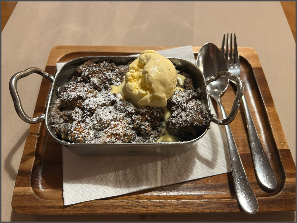ペロリと食べてしまった後、デザートを頼むかどうか、先程の強面のスタッフにたずねられる。テンションが上がっていたため、いつもなら頼まないのに、「Yes,please.」と言ってしまった。メニューをQRコードで読み取ると、詳しくデザートの説明をしてくれる。強面だが結構優しい。というか、ハンガリーに来てから出会った人全員親切だ。