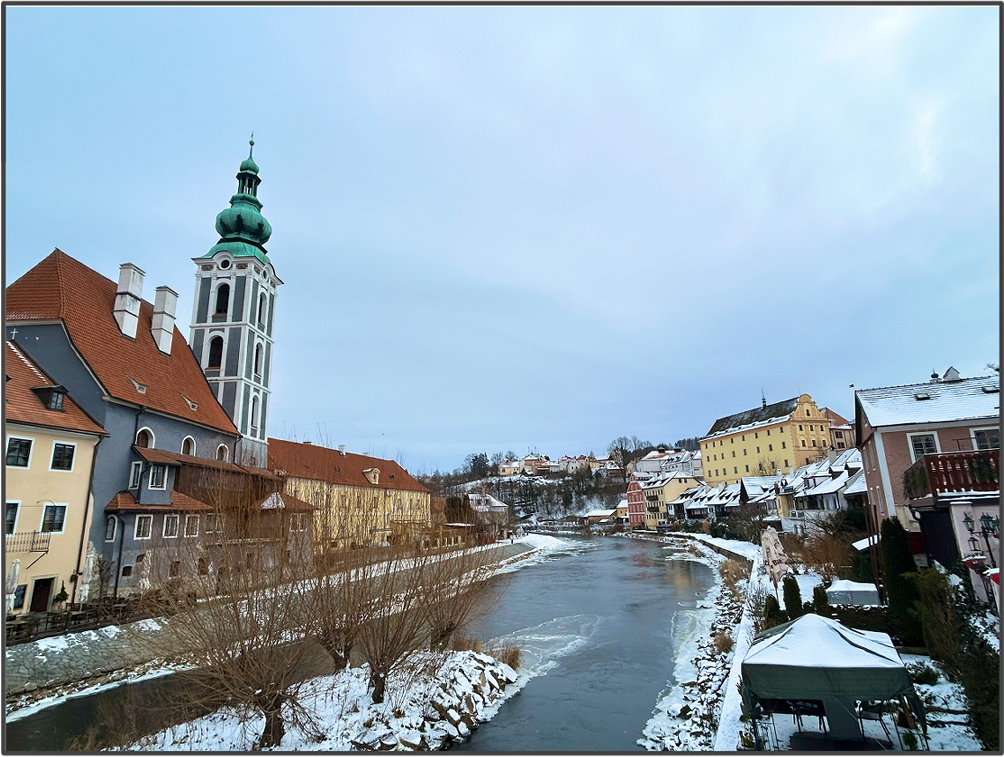 チェスキークルムロフの街並みも、絵本の世界みたいで素晴らしかった。冬も良いが、一般的には赤い屋根が連なっている街並みが有名なので、それを見たいなら雪が降っていない時期に行った方が良いだろう。しかし冬はクリスマスマーケットというアドバンテージがある。悩ましいところだ。